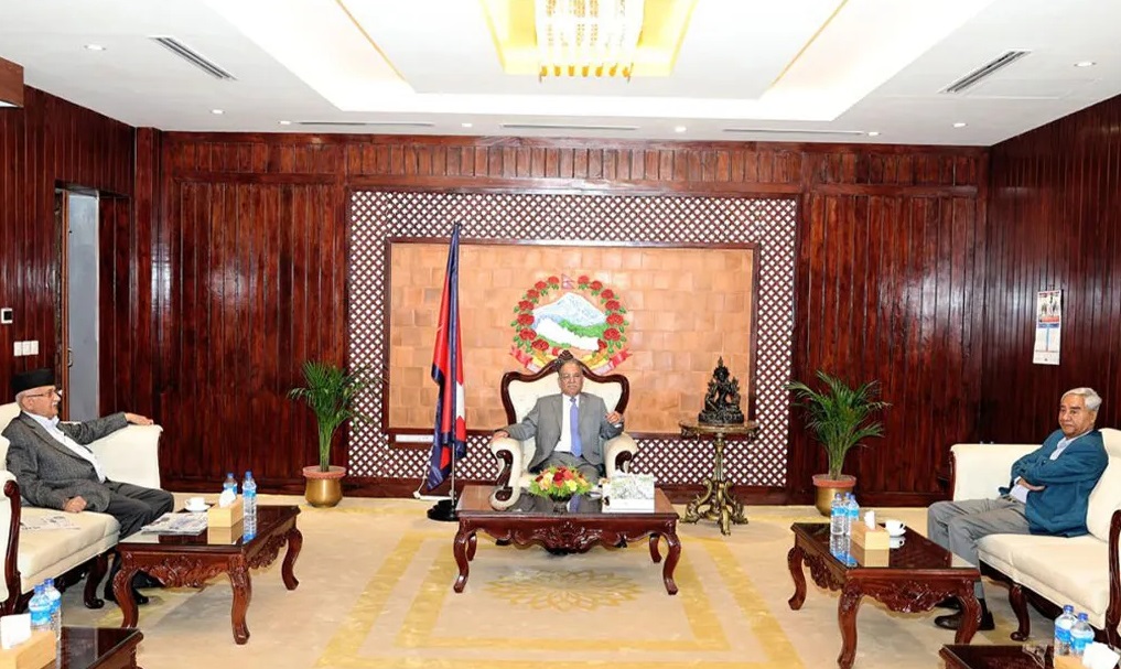 बालुवाटारमा प्रचण्ड, देउवा र ओलीबीच भेट