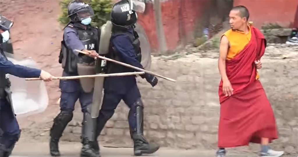 बाटो हिंड्दै गरेका भिक्षुमाथि भद्रकालीमा प्रहरीको लात्ती !