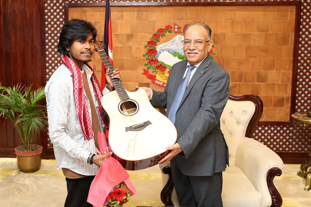 नेपाल आइडल विजेता परियारलाई प्रधानमन्त्रीले दिए गितार उपहार