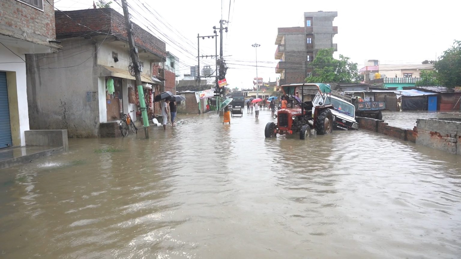 लगातार परेको वर्षाले वीरगंजको सहरी क्षेत्र डुबानमा