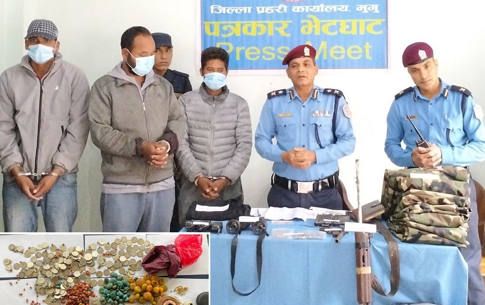 मुगुमा गाउँको २४ घर र सार्वजनिक गुम्बामा चोरी गर्ने तीन जना पक्राउ