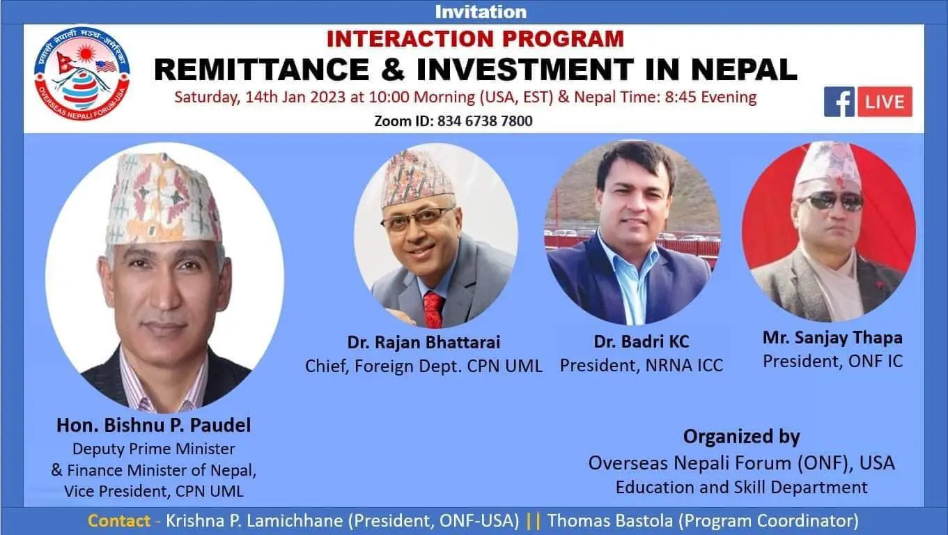 प्रवासी नेपालीहरुसंग अन्तरक्रिया गर्दै उपप्रधान तथा अर्थमन्त्री बिष्णु प्रसाद पौडेल