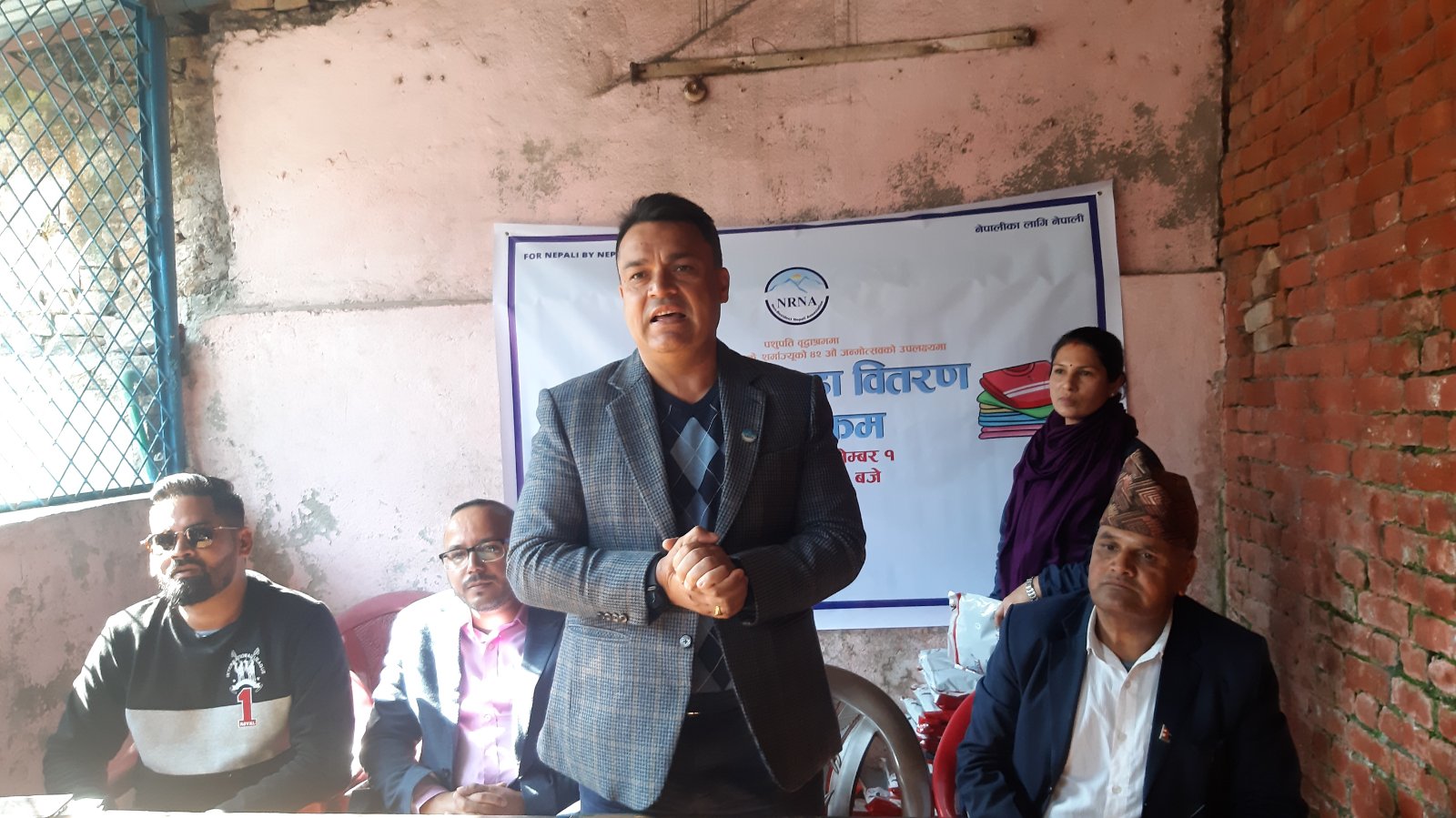 एनआरएनएद्वारा पशुपति वृद्धाश्रममा न्यानो कपडा वितरण